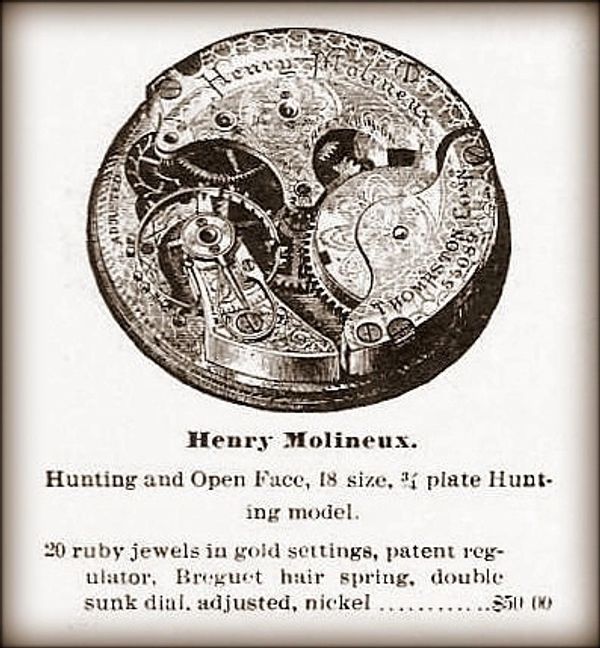 The 16 and 17-jewel nickel Grade 508 is Adjusted to Temperature and Position, according to both the plate engravings and the period ads, while the Henry Molineux is simply Adjusted, technically making the 508 a higher grade at the same jewel count.