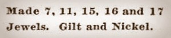 The factory seldom jeweled the center wheel on the pillar plate, resulting in a 16-jewel watch that appears to be fully jeweled. The company also produced 17-jewel variants, but without pulling the dial there is no way to visually tell the difference. None of the known advertisements list a 16-jewel Model 2, so it's not clear if there are any grades yet to be found or if it was intentionally misleading advertising. For ease of research the 16- and 17-jewel grades have been combined.