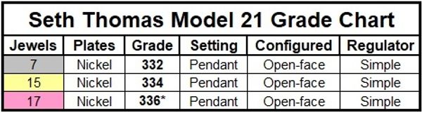There are three known Model 21 grades. All of them are open-face with a simple pinstripe pattern on nickel plates.