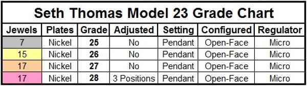 The Model 23 apparently debuted in the 1913 Trade Catalog alongside the Model 22. No prior publication has been found and it was not mentioned in the 1914 supplement, which listed only the three remaining Centennial grades. It's bizarre that the company would tool up to produce, not one, but two 12-size movements when their sales were slumping toward the end of pocket watch production. No named grades or private labels have been reported.