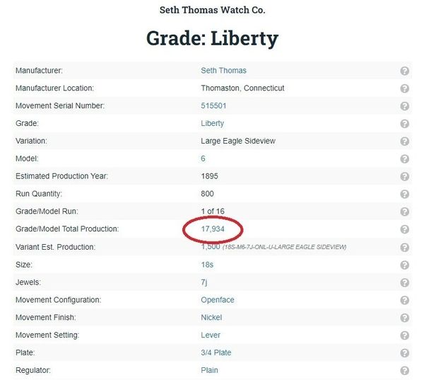 The PW Database has decided to rename the Eagle grade - established as such in every catalog yet found - as the Liberty grade, apparently just to see if the public will blindly swallow it. And they have, copying and pasting the search return into their eBay listings, since most people will evidently believe anything found on that site without question. The real Liberty was of course a grade within the Model 12 family with its own marked dial that had nothing to do with the Eagle line.