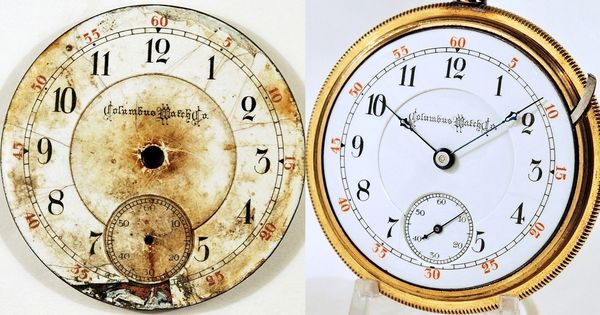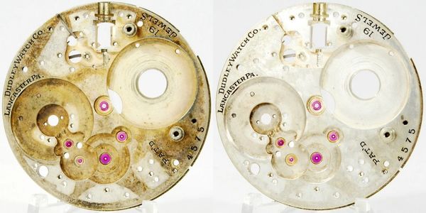 They offer a number of cosmetic processes to improve the appearance of your watch, like replacing missing enamel in the plate engravings, hand bluing, and tarnish removal as shown in this rare Dudley watch.