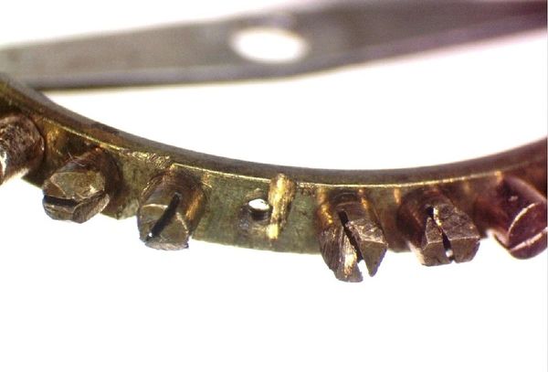 Why is that? Because when a watch inevitably slowed from thickening oils, the lazy choice was to simply grind off the balance weights to gain time, like in this photo. At some point the watch would've been cleaned properly, which then ran too fast because of the missing weight.